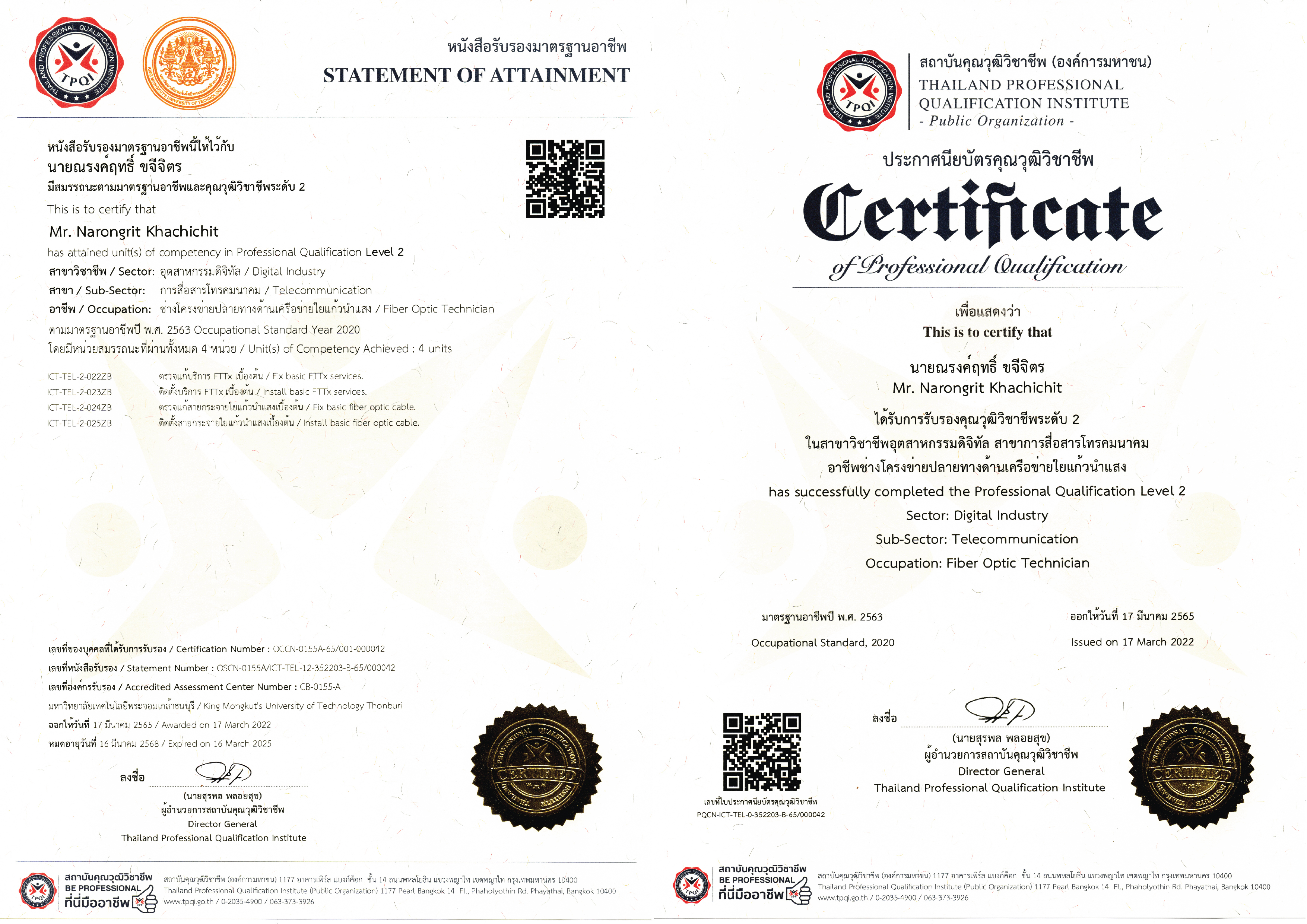 ผ่านการประเมินสมรรถนะของบุคคลตามมาตราฐานวิชาชีพ