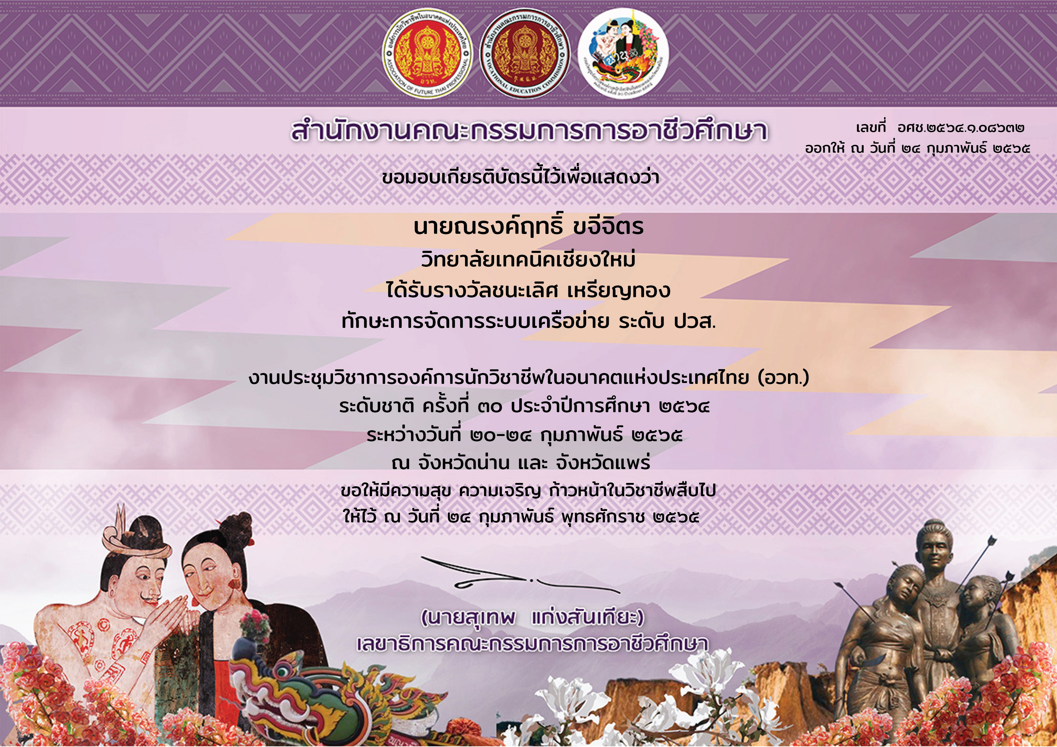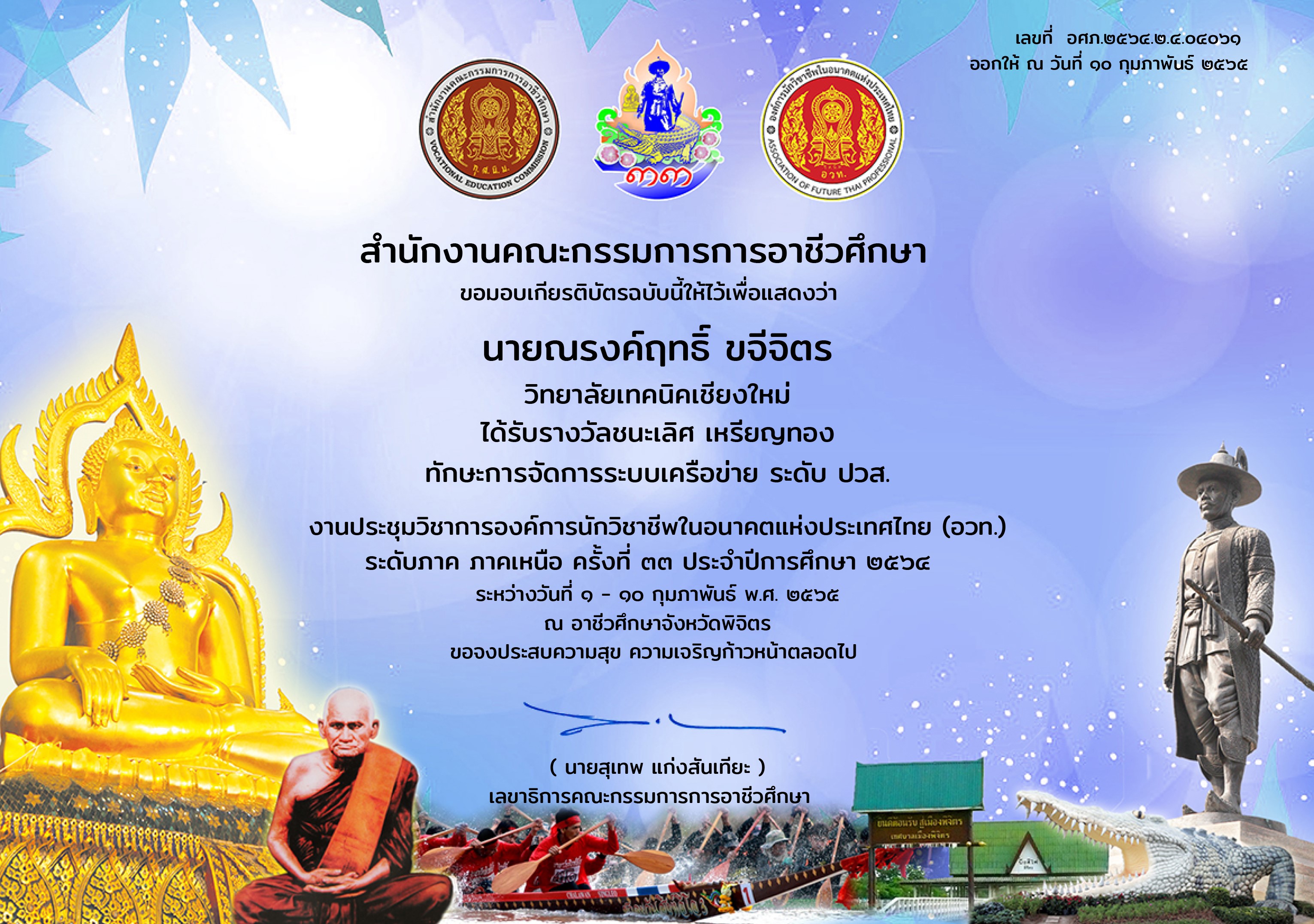 รางวัลชนะเลิศ เหรียญทอง การแข่งขันการจัดการระบบเครือข่าย ระดับภาค