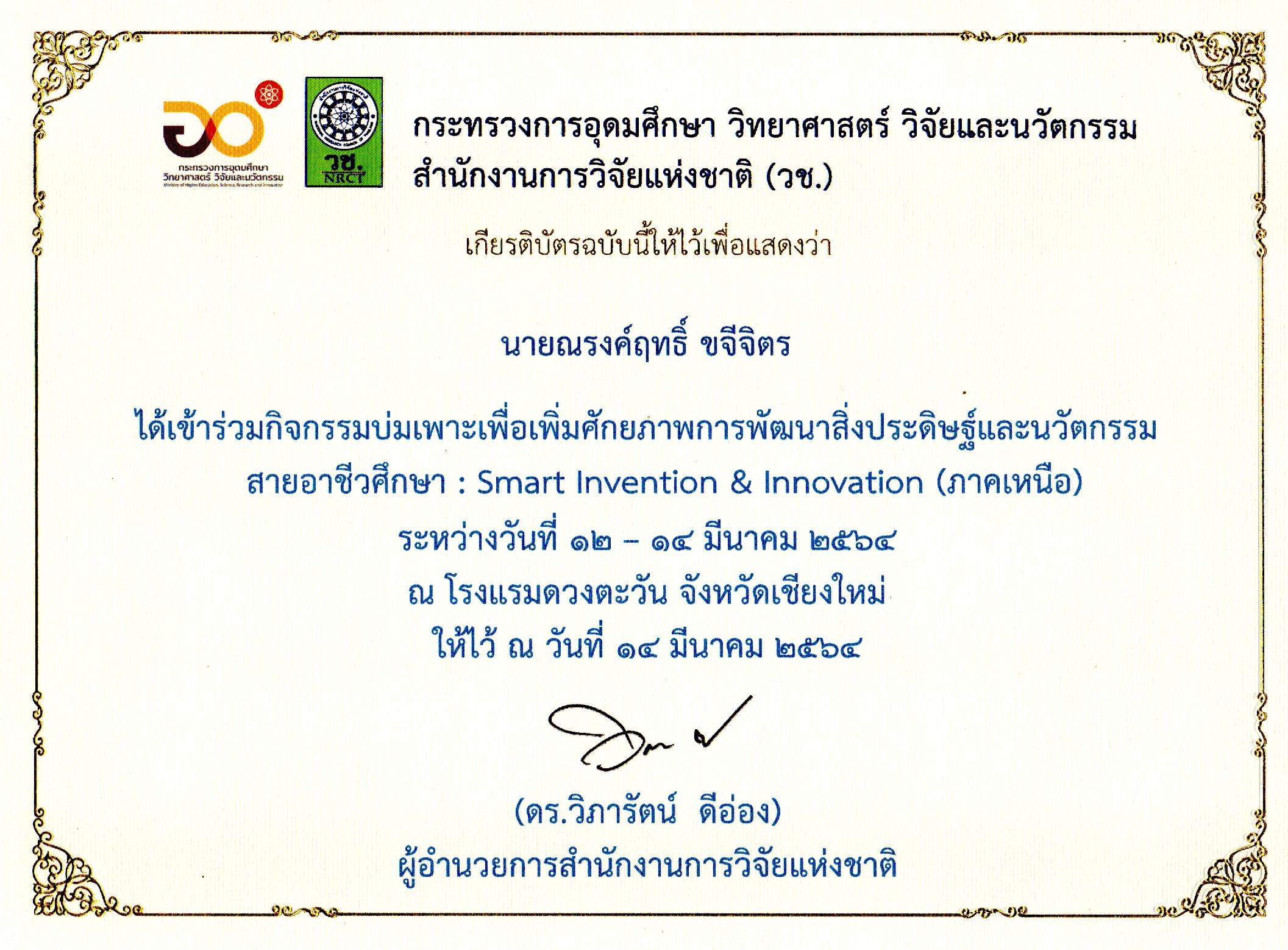 เข้าร่วมกิจกรรมบ่มเพาะเพื่อเพิ่มศักยภาพการพัฒนาสิ่งประดิษฐ์และนวัตกรรมสายอาชีวศึกษา